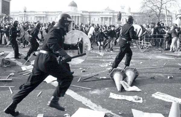 The next major confrontation — the Poll Tax demonstration of March 1990 — followed the familiar pattern of Riot Squad deployment, press witch-hunts of protesters, surveillance, manufactured evidence and disinformation by the police, harsh sentences in the courts (called for by Labour leaders), and the, by now, ritual Labour Party denunciation of all violence except police violence.