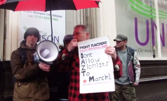 On 10 March, a Stand Up To Racism (SUTR) steering committee meeting in Glasgow overwhelmingly voted down a motion calling on SUTR to tell the Confederation of Friends of Israel – Scotland (CoFIS) that they are not welcome to join the SUTR march in Glasgow on 17 March. CoFIS had been allowed to take part in the 2017 SUTR march, complete with a banner and Israeli flags, despite the opposition of Palestine supporters present at the time.