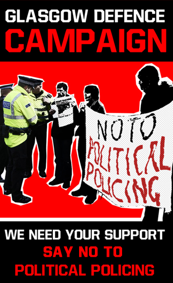 ‘The police in Britain have begun a political war of intimidation against those who exercise their right to protest peacefully. No where is this more evident than in the outrageous actions of the Strathclyde police against the Glasgow Defence Campaign, including a direct attack on the right of free speech and peaceful assembly. Who will be next? If the police are allowed to succeed, other legitimate campaigns will be targeted. It’s imperative the Glasgow Defence Campaign has the support of all of us.’