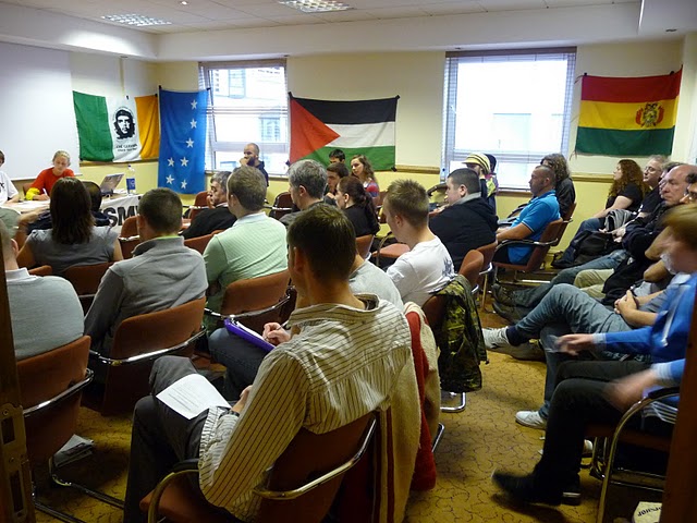 On 10 July, Fight Racism! Fight Imperialism! organised a lively and well attended dayschool in Glasgow city centre under the title ‘Voices of resistance: fighting imperialism across the world’. The meeting saw over 60 people attend throughout the day, with FRFI members and supporters from Glasgow, Dundee, Newcastle, Sunderland and Manchester. There were also representatives from various Irish republican organisations, people from the Basque country and individuals from as far a field as Germany and Latvia as well as many local people met on the streets of Govanhill and elsewhere. Members of Republican Sinn Fein provided security in the wake of loyalist threats against comrades leafleting in the run-up to the meeting.