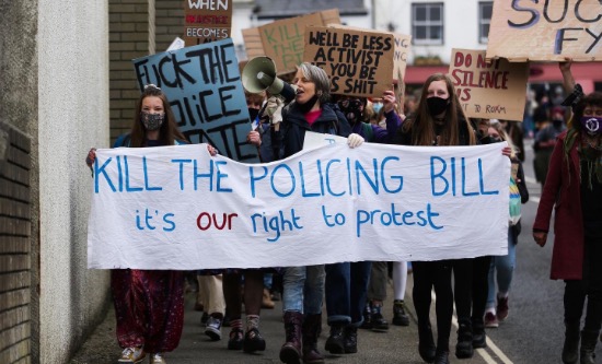 But in order to pass this relatively progressive change to the law, MPs must vote for the obscenely reactionary Crime and Policing Bill within which it has been embedded. This piece of legislation seeks to increase the powers of the violently sexist British police and restrict democratic rights (see ‘Policing Bill: criminalising the working class’, FRFI 305). It includes ‘respect orders’ where police can force individuals to comply with any conditions described in the order without being convicted of a crime and allows the police to raid someone’s property without a warrant if stolen goods have been electronically tracked at that property. Other recent amendments introduce offences for ‘insulting’ behaviours towards emergency workers (which, since 2018, includes police) and trespassing with intent to commit a criminal offence; and facilitate the extraction of more information from online accounts on devices seized by police.