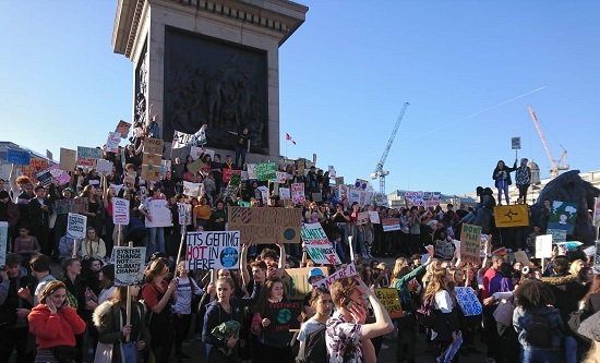 Youth climate strikers occupy Nelson's column, 2019 (photo: FRFI)