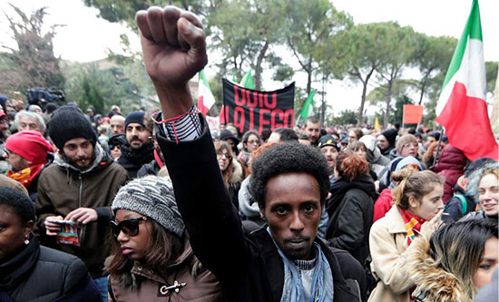 Anti-facist protest in solidarity with migrants in Macerata Italy, March 2018
