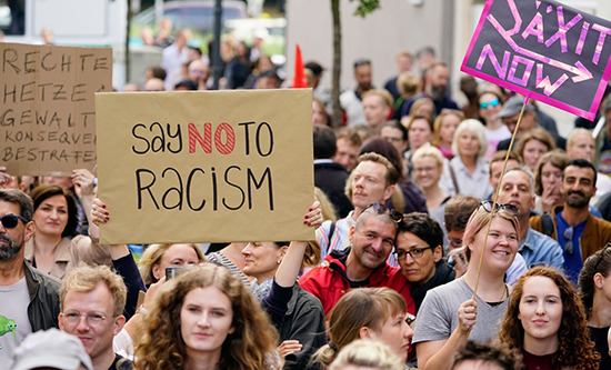 The right wing anti-immigrant Alternative for Deutschland party (AfD) has criticised Merkel for being weak on immigration, and used propaganda about immigrant street crime and harassment of women to capitalise on fear and racism and call for even harsher detention and deportation policies. The AfD is strong in east Germany, formerly the German Democratic Republic, and is in part an expression of the social and economic crisis generated by the imperialist recolonisation of the country. In August, protests in Chemnitz reportedly drew 8,000 far-right extremists and AfD voters, who took to the streets with German flags, made Nazi salutes and physically chased down and threatened with knives dark- skinned people they suspected could be refugees. This was organised by far-right organisations like anti-Islam group PEGIDA and attended by some AfD leaders and many of its membership, following the murder of a German man, allegedly carried out by asylum seekers. In September a similar march in Koethen attracted more than 1,000 far right supporters against Merkel’s immigration policies and in response to the death of a German man who allegedly died of a heart attack after intervening in a fight between two Afghan migrants where he was punched in the face. Only half as many counter-protesters were mobilised. 1,000 police officers were sent to protect the right-wing protesters and AfD.