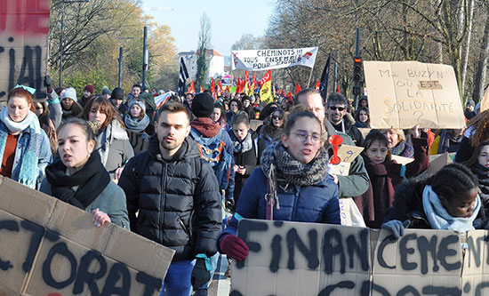 The police have been quick to use tear gas against the protests, and to beat unarmed demonstrators with truncheons. This sparked anti-police protests across the country, which were themselves then violently dispersed by the police. On 17 December, in the Place de la Nation in Paris, police fired tear gas into demonstrators and charged at them, whilst protesters responded with a hail of missiles. On 23 December in Gare de Lyon, one of the capital’s six main train stations, riot police were forced out of the building by protesters chanting ‘everyone hates the police’. Outside the station, police clubbed and gassed demonstrators. When the government attempted to call a Christmas truce, they were widely met with derision as they continued to send in armed police to subdue protesters.