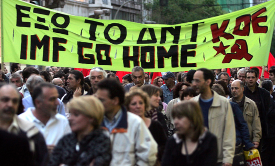 Greece is teetering on the edge of bankruptcy. A repayment to the IMF of €305m is due on Friday 5 June. US Treasury spokesperson Jack Lew phoned Greek Prime Minister Alexis Tsipras on 27 May to tell him that: ‘Greece is going to have to do some very tough things’. The possibility of Greece’s exit from the eurozone looms closer. Those sections of the European imperialists who regard this as an acceptable outcome of the long drawn-out negotiations between the Greek government and the Troika – the International Monetary Fund (IMF), European Commission (EC) and the European Central Bank (ECB) – seem to be in the ascendancy. They are nervous that concessions to Syriza may fuel demands for similar treatment by the other PIGS governments – Portugal, Italy and Spain. They are less bothered about the risks of a ‘Grexit’ since Greece represents just 2% of the eurozone economy. MICHAEL MACGREGOR reports.