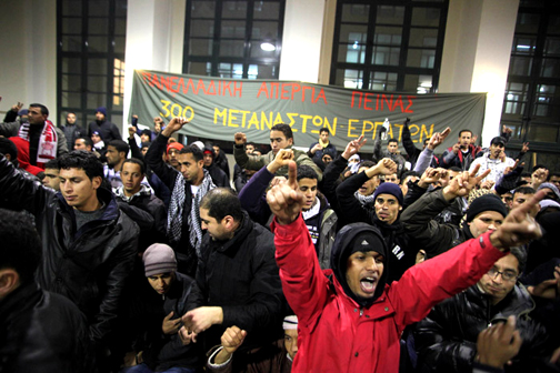 Up to 300 migrants, mostly from North Africa, are currently on hunger strike in the two main Greek cities of Athens and Thessaloniki. As of 5 March the migrants had been on hunger strike for 40 days. This means that the critical threshold beyond which health damage is non-reversible has been crossed. So far 100 protesters have been hospitalised, with many now refusing to drink water. Many are on the brink of death.