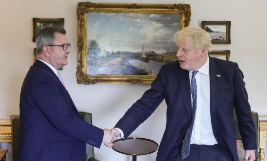 The government’s talk of suspending elements of the Protocol has long been used as a distraction tactic and to create leverage in negotiations with the EU. The DUP is relying on Johnson’s government – the same Johnson who told Loyalists there would be an economic border between Britain and the north of Ireland ‘over my dead body’ – to carry through with its threat to override the Protocol. Britain has to choose between backtracking and frustrating the Loyalists further, or continuing to provoke what could result in a trade war with Europe.