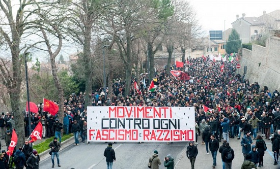 The electoral gains made by M5S (32% of the vote) and the Lega (18% – quadrupling its previous tally) on 4 March 2018 were entirely predictable. The governing Democratic Party was irrevocably tainted through its willing implementation of budget cuts and other austerity measures demanded by the EU in a futile effort to reduce its public debt from a staggering €2.3 trillion, or 132% of GDP. Italy’s long-term economic problems of low productivity, stagnation and falling wages have been exacerbated by its membership of the euro. Unemployment is over 11%, rising to 37% for those aged under 35. It is highest in Italy’s underdeveloped southern region, which has the highest unemployment rate in southern Europe. The number of Italians living in absolute poverty has risen by 300,000 in the last year to just over five million – triple the level twelve years ago. Real income has barely risen in 20 years while wealth inequality has increased, with the poorest 40% of the population holding just 3.7% of the country’s wealth; the top 30% have 75%. Yet the left in Italy has collapsed; the ‘leftist’ Potere al Popolo – seen as inspired by groups like the pro-Labour Momentum in Britain – garnered just 1.1% of the vote. Social movements on the ground, many campaigning in solidarity with migrants, have been unable so far to mount a consistent challenge to the growth of the far-right, with thousands joining fascist organisations across the country.