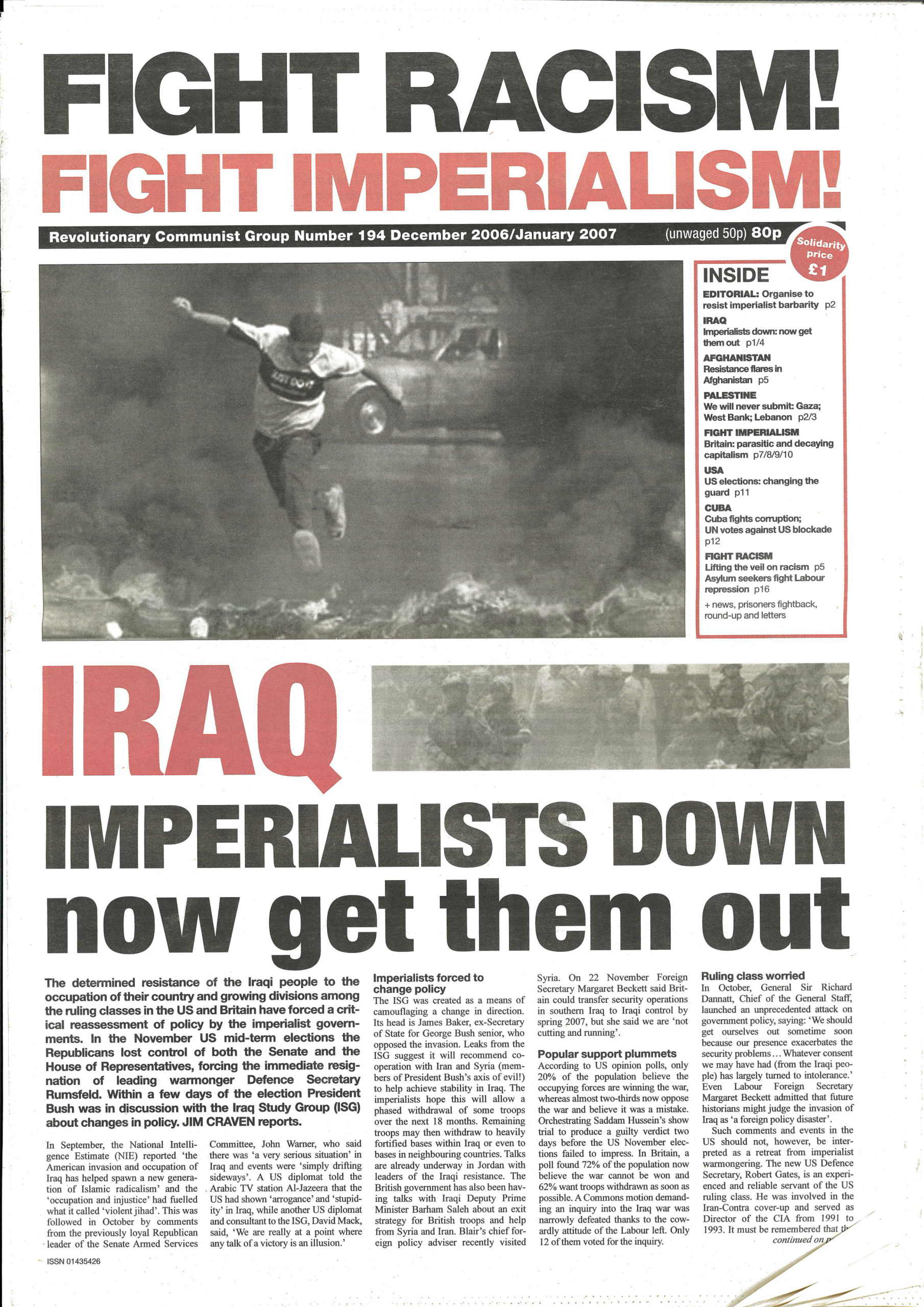 FRFI 194 Dec 2006 / Jan 2007 – Iraq: Imperialists down now get them out