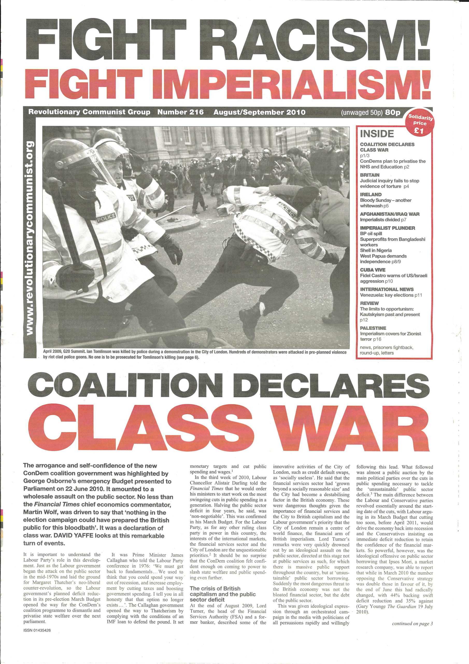 FRFI 216 Aug / Sep 2010 – Coalition declares class war