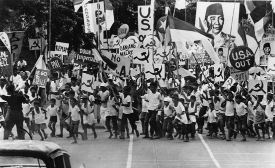 In 1965 the imperialist powers faced huge challenges to their continued international dominance. The Soviet Union and the People’s Republic of China provided a bulwark against imperialist capital, as well as support to anti-imperialist and socialist national liberation movements across Africa, Asia and Latin America. The Cuban Revolution had triumphed in 1959. Movements were building within imperialist countries in solidarity with national liberation movements and against oppression at home. Southeast Asia was a crucial region for the imperialists. The US was engaged in the Vietnam War and it was not going to plan. British imperialism relied on the exploitation of Malaysia. Of Indonesia, Richard Nixon later wrote: ‘With its 100 million people and its 300-mile arc of islands containing the region’s richest hoard of natural resources, Indonesia is the greatest prize in Southeast Asia’ (1967). However, this ‘prize’ was out of the reach of imperialist capital, with anti-imperialist nationalist Sukarno – who had led the country’s liberation struggle against Dutch colonialism – as President. Sukarno was a founder of the Non-Aligned Movement. He withdrew Indonesia from the UN in 1965, and refused IMF and World Bank ‘support’, stating ‘go to hell with your aid!’ Sukarno’s rule was supported by an uneasy alliance of three pillars of Indonesian society – the army, political Islam, and the communists. At the time, the PKI was the third largest communist party in the world. In 1965, it had more than three million members, and around eighteen million supporters in its range of powerful mass organisations. The PKI was the strongest and best organised political party in the country. The relationship between Sukarno and the PKI was strengthening.