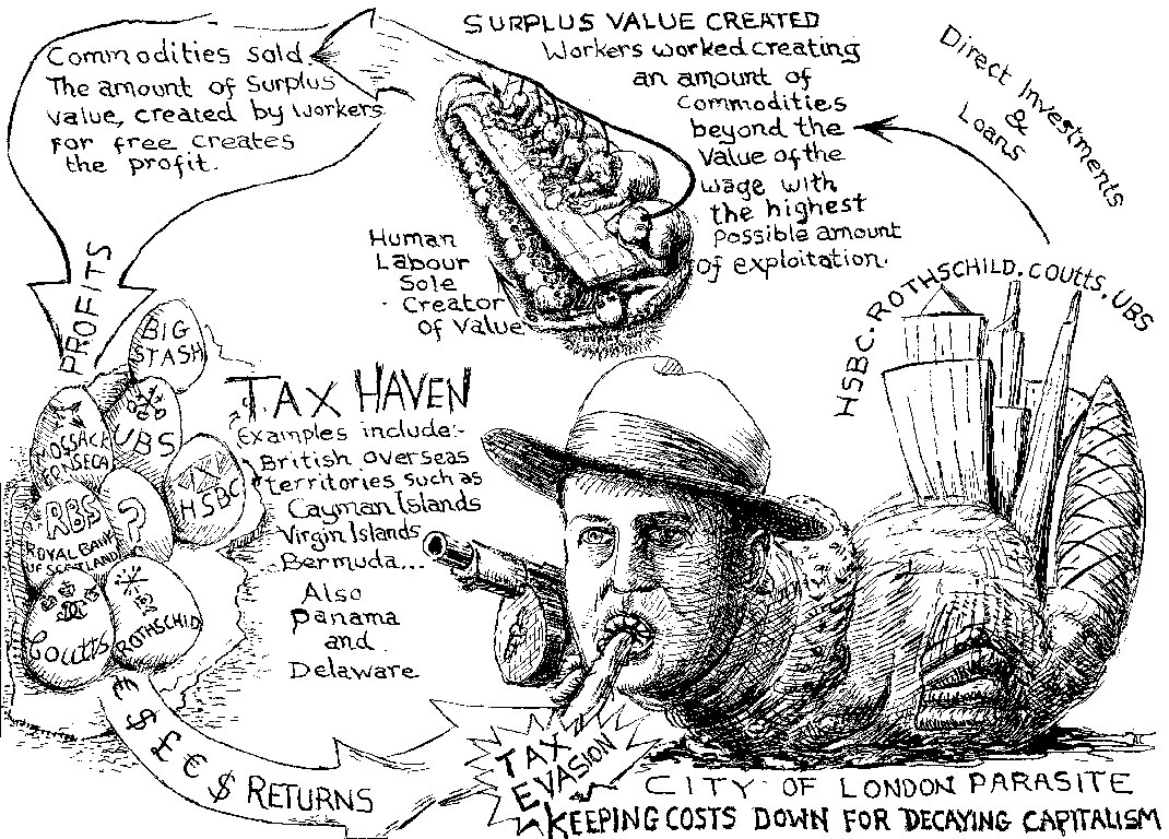 Profit increasingly takes a parasitic form: interest, currency exchange deals and the manipulation of financial assets. Fraud is an extension of these methods of securing a share of surplus value and is invaluable to the British ruling class. When Cameron proclaimed, ‘I’m determined that the UK must not become a safe haven for corrupt money from around the world,’ we knew it already is.
