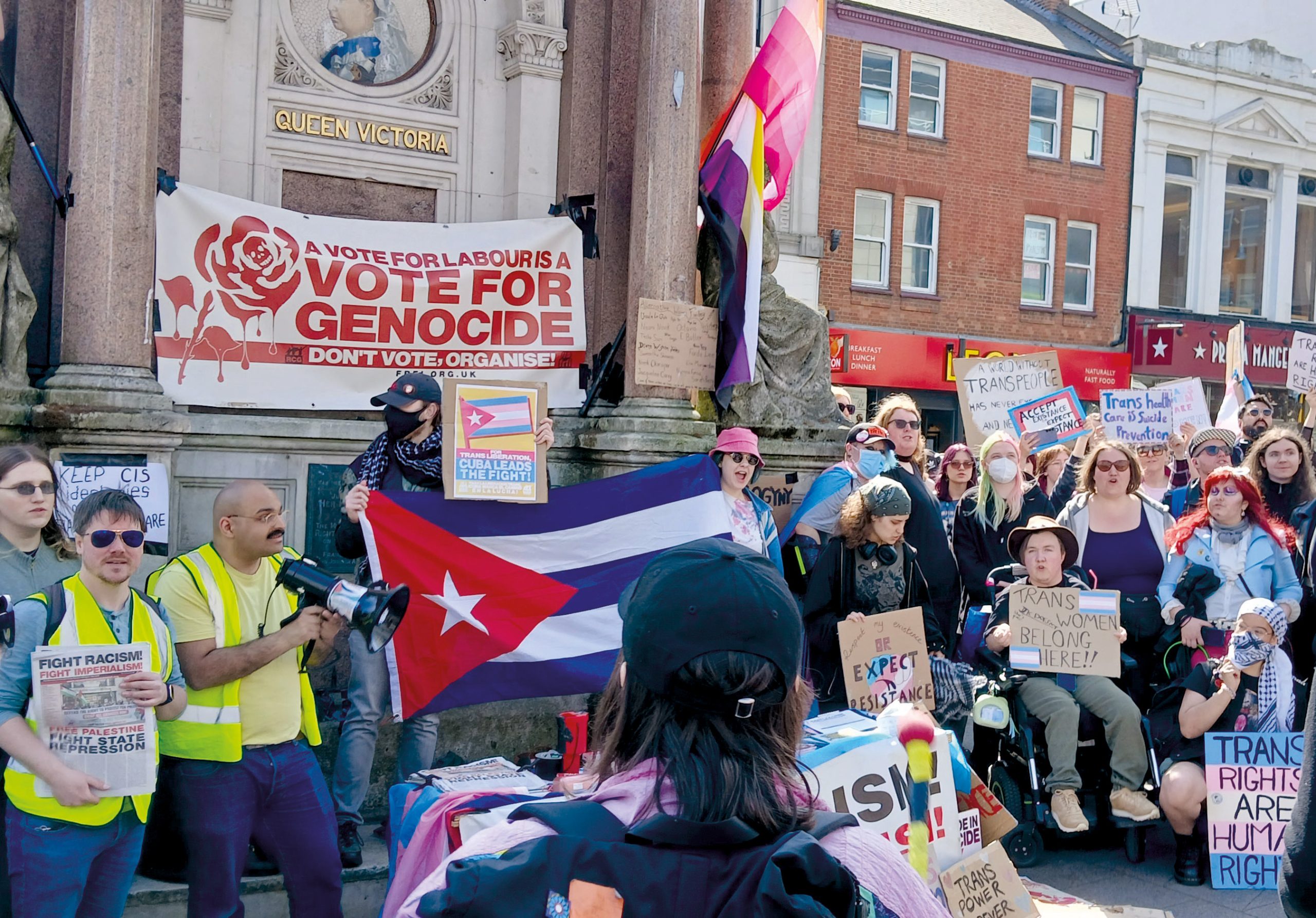The demonstrations across the country in the weeks following the judgment were a refreshing response to the ruling. Dominated by young people, protests were democratic in spirit and conduct, with open mics being the norm rather than the usual exclusionary methods adopted by the official labour movement. In Brighton, Liverpool, London, Newcastle and elsewhere, comrades of FRFI addressed crowds in the thousands to call for solidarity with trans people in the face of this attack by the British state. The Revolutionary Communist Group signed a 28 April open letter by the Trans Safety Network calling on LGBTQ+ Pride event organisers to reject the presence of the Labour Party and Tory Party at their events; and organisers of Pride in Birmingham, Brighton, London, and Manchester have since issued a joint statement ‘suspending political party participation’ from this year’s events.