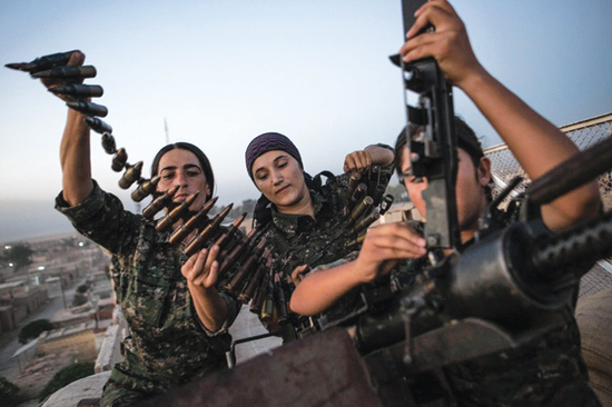 In July 2012 the people of Kobane rose up against the Syrian Ba’athist government and with the YPG took over the city’s borders and state institutions. From Kobane the Rojavan revolution spread to include three Cantons (Efrin, Kobane and Cizire) in the declared autonomous region of Rojava (see FRFI 237, February/ March 2014). Practising democratic confederalism, Rojava emphasises participatory democracy and decision making from the grassroots up, along with equality and participation of women – many of the YPG guerrillas are women – and it stresses the importance of ecology.