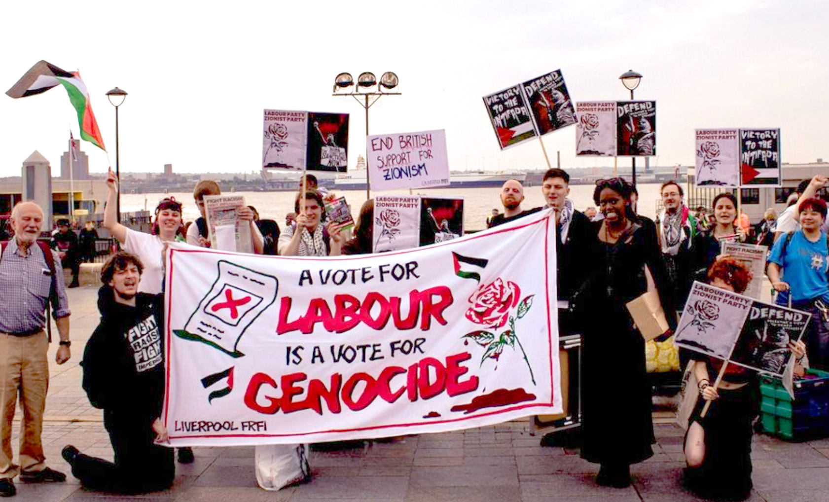 Not all this spirit has been crushed though: FRFI supporters joined hundreds in booing and heckling Liverpool MP Kim Johnson as she spoke. Johnson had grovelled before the Labour leadership in an abject apology to parliament for calling the Netanyahu government ‘fascist’ in February 2023. More recently, she boasted of voting to keep the two-child benefit cap and abstained on the withdrawal of pensioners’ winter heating allowance. At the end, dozens of people took photos of the FRFI banner ‘A vote for Labour is a vote for genocide’: a political opinion now widely shared. FRFI will continue to fight for the total isolation of the Zionist state through the imposition of economic, political, diplomatic and cultural sanctions, the only way that will force British imperialism to cut its support for its genocidal ally.