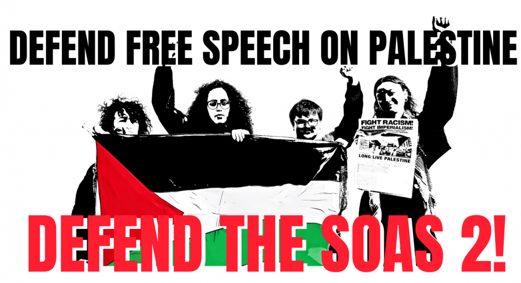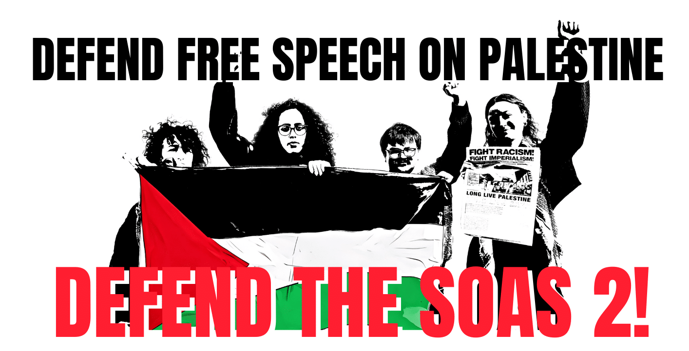 A SOAS University of London student, Sarah, has been charged, and another SOAS student has been arrested, under Section 12 of the Terrorism Act for ‘inviting support for a proscribed organisation’. Their supposed crime is to have made speeches on behalf of the SOAS Fight Racism! Fight Imperialism! society in October 2023 supporting the Palestinian right to self-determination. This is an intensification of suppression of free speech on the issue of Palestine. We demand that the Crown Prosecution Service drops all charges against Sarah and discontinues all its investigations in relation to alleged Terrorism Act offences against the other student.