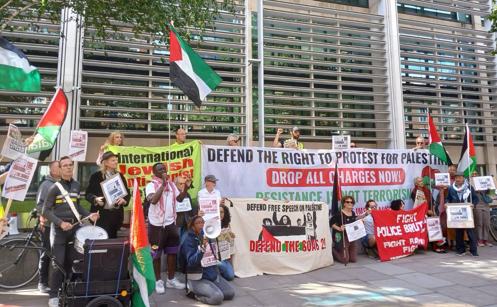 More than 1,400 people have been arrested in an escalating campaign of civil disobedience since the direct action group Palestine Action was proscribed on 4 July. More than 1,500 people have signed up for the next day of action on 4 October. The campaign involves standing peacefully holding a placard reading ‘I oppose genocide, I support Palestine Action’, in defiance of the ban. As of 5 September, 138 people had been charged, predominantly under Section 13 of the Terrorism Act, for taking part in the protests; they potentially face a hefty fine or up to six months in prison. However, despite the mass mobilisations for the event itself, there has to date been little in the way of an organised legal campaign for those charged. When the first three people to face charges – for taking part in the first protest on 9 July – appeared in Westminster Magistrates’ Court on 16 September, the Revolutionary Communist Group and Defend SOAS 2 Campaign were the only organisations to mobilise for a protest. We called for the scrapping of the Terrorism Act and the dropping of all charges. We will be present in Parliament Square on 4 October alongside other organisations such as CAGE International to call once again for the Terrorism Act to be scrapped and all charges dropped.