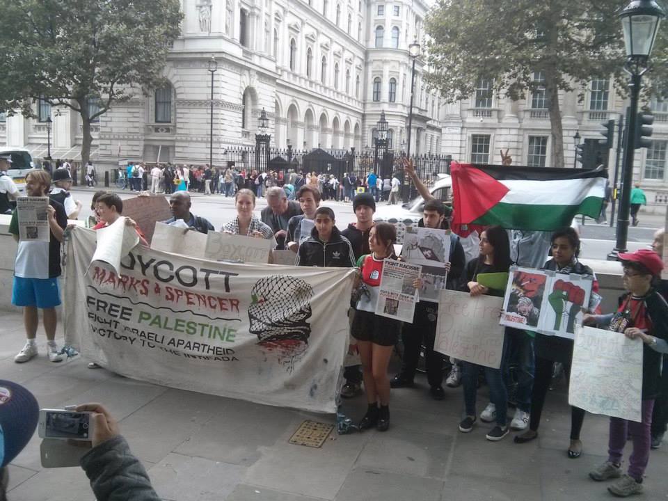Below is a video of activists from London RCG, Victory to the Intifada and those who joined the action outside Downing St on 6 September which then took on a rolling picket up Regents St and Oxford St to businesses which sell Israeli goods like Boots, M&S, Tommy Hilfiger, and banks like Barclays which sell weapons to Israel.
