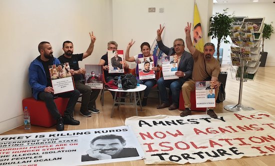 On 26 April Amnesty International called Metropolitan Police officers into its London offices to remove Kurdish protesters and their supporters who were demanding that Amnesty issue a statement condemning the Turkish state’s treatment of the imprisoned leader of the Kurdistan Workers’ Party (PKK) Abdullah Ocalan. Amnesty International refuses to do this, even though Ocalan has been held in total isolation since 2011, contrary to national and international laws and conventions on the treatment of prisoners.