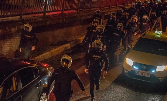 [1] Police in riot gear are referred to as RoboCops in Turkey due to their excessive outer suits for protection.