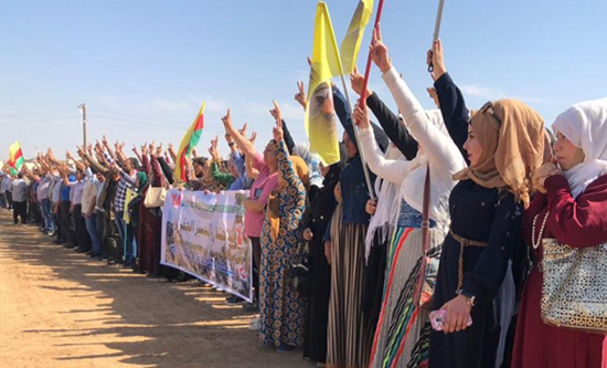 In July 2012, the Kurdish people and others in Rojava rose up and established the Democratic Autonomous Administration. This is a democratic, gender equal, secular, ecological and non-sectarian administration with inter-ethnic cooperation. It is a beacon of hope for the Middle East – a beacon that Turkey and others want to extinguish. In January 2018 the Turkish state and it auxiliaries attacked Afrin, the western-most canton of Rojava, and occupied it. Since then Afrin has been subject to terror and ethnic cleansing; at least 150,000 people were exiled and over 500 civilians killed. Erdogan has spoken of his ambition to reclaim territories lost to the Ottoman Empire after the First World War. The attack on Afrin and the invasion of Rojava conform to realising that ambition.